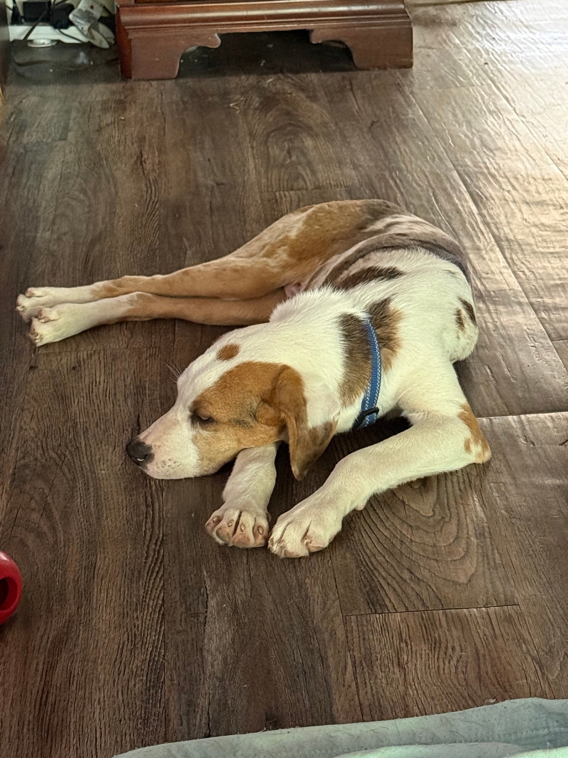 Chavo, our very first foster, is a neutered male, 7 months old, and about 30 lbs. He's a mixed breed, potentially curr or hound. Chavo has been with the U CARE rescue in Pineville, Louisiana since he was 5 weeks old, having bravely survived parvovirus exposure. When he first arrived at Full Pawtential Rehab, he was shy and hesitant, but after just 5 days, he now eagerly seeks human attention, comes when called, sleeps soundly in his kennel, and loves to play. We are diligently working on his potty training and basic commands, helping him become the best companion he can be. He's a testament to how quickly dogs can learn to love and trust again. He will be ready for a home on April 22, 2026!